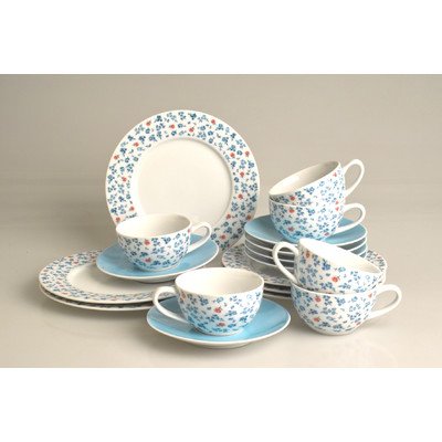 18-tlg. Kaffee Set "Vichy" aus Porzellan Farbe (Obertassen / Untertassen / Dessertteller): Flower Blau / Uni Blau / Flower Blau