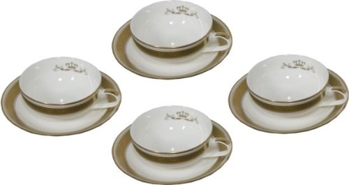 Tee-Tassen. Japanisches Porzellan aus der Manufactur Shibata. Edel gestaltetes Porzellan mit einem breiten und drei schmäleren Goldrändern sowie einem Kronensymbol versehen.