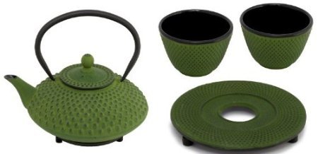 Bredemeijer Teekanne Jing Set (1 Teekanne 1,25 Liter, 1 Untersetzer, 2 Becher) grün Gusseisen