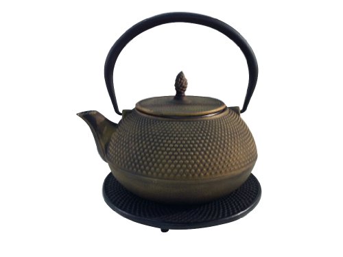 Gußeisen Teekanne Arare 1.2l schwarz/gold m.Untersatz