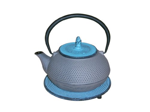 Gußeisen Teekanne Arare 1.2l grau/hellblauer Deckel m. Untersetzer