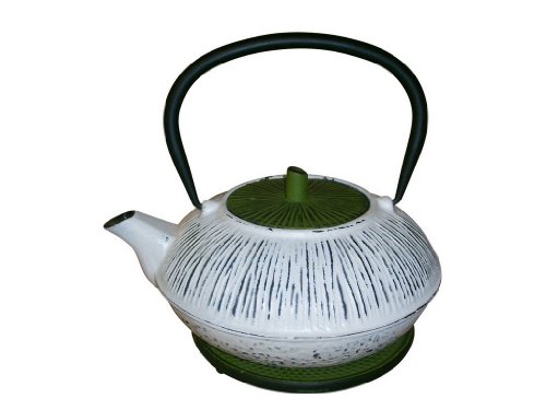 Gußeisen Teekanne Dalian 1.1l weiss/grüner Deckel m. Untersatz