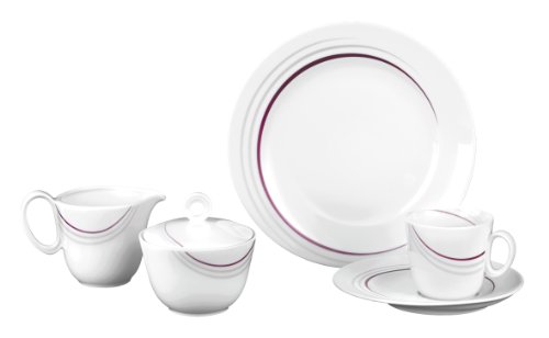 - bestehend aus: 6x Kaffeeobertassen 0,23 l, 6x Kaffeeuntertassen 16 cm, 6x Frühstücksteller 23 cm, 1x Zuckerdose 6 Pers., 1x Milchkännchen 6 Pers.